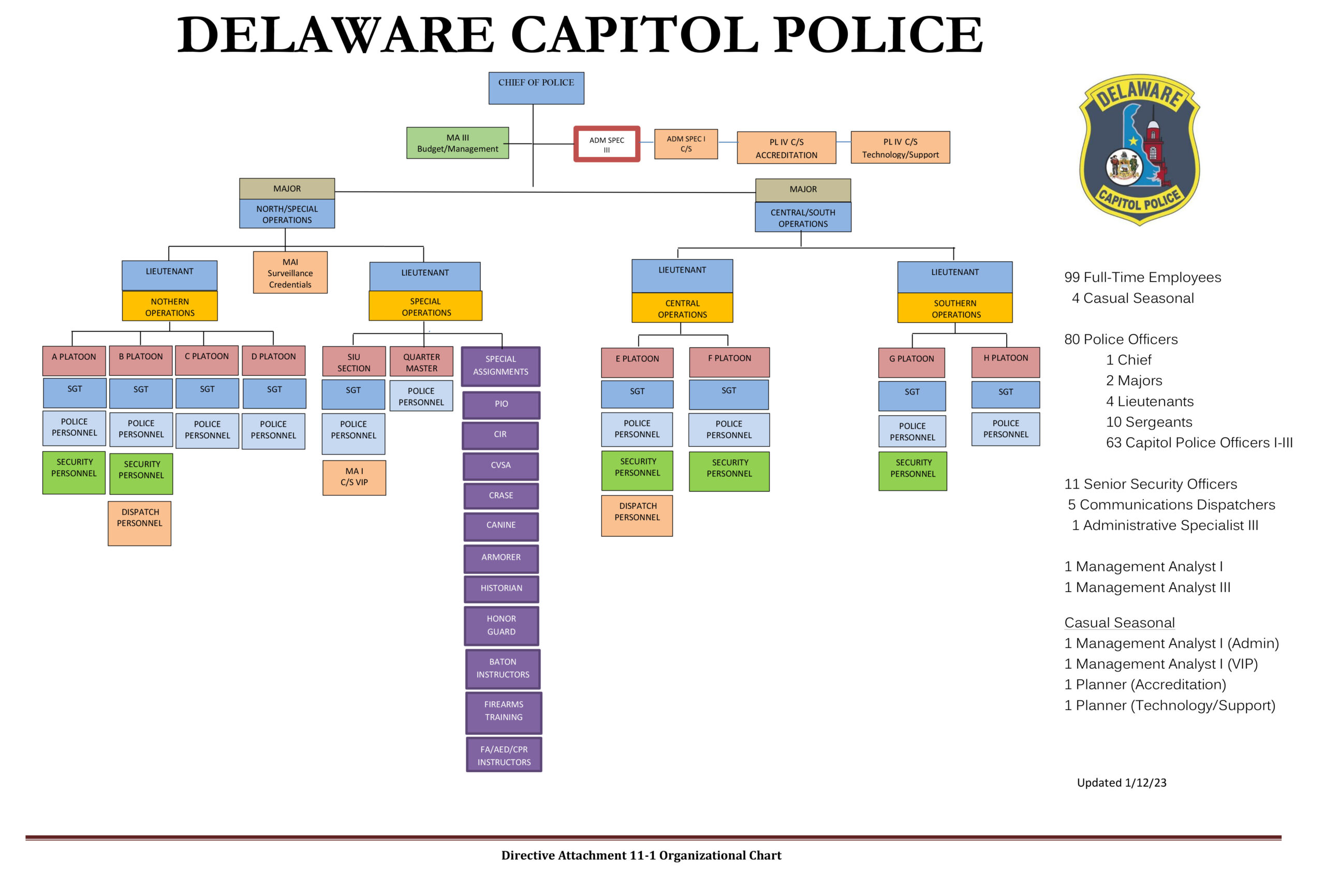 The Delaware Capitol Police maintains staff in all three of Delaware’s counties servicing all three branches of state government.